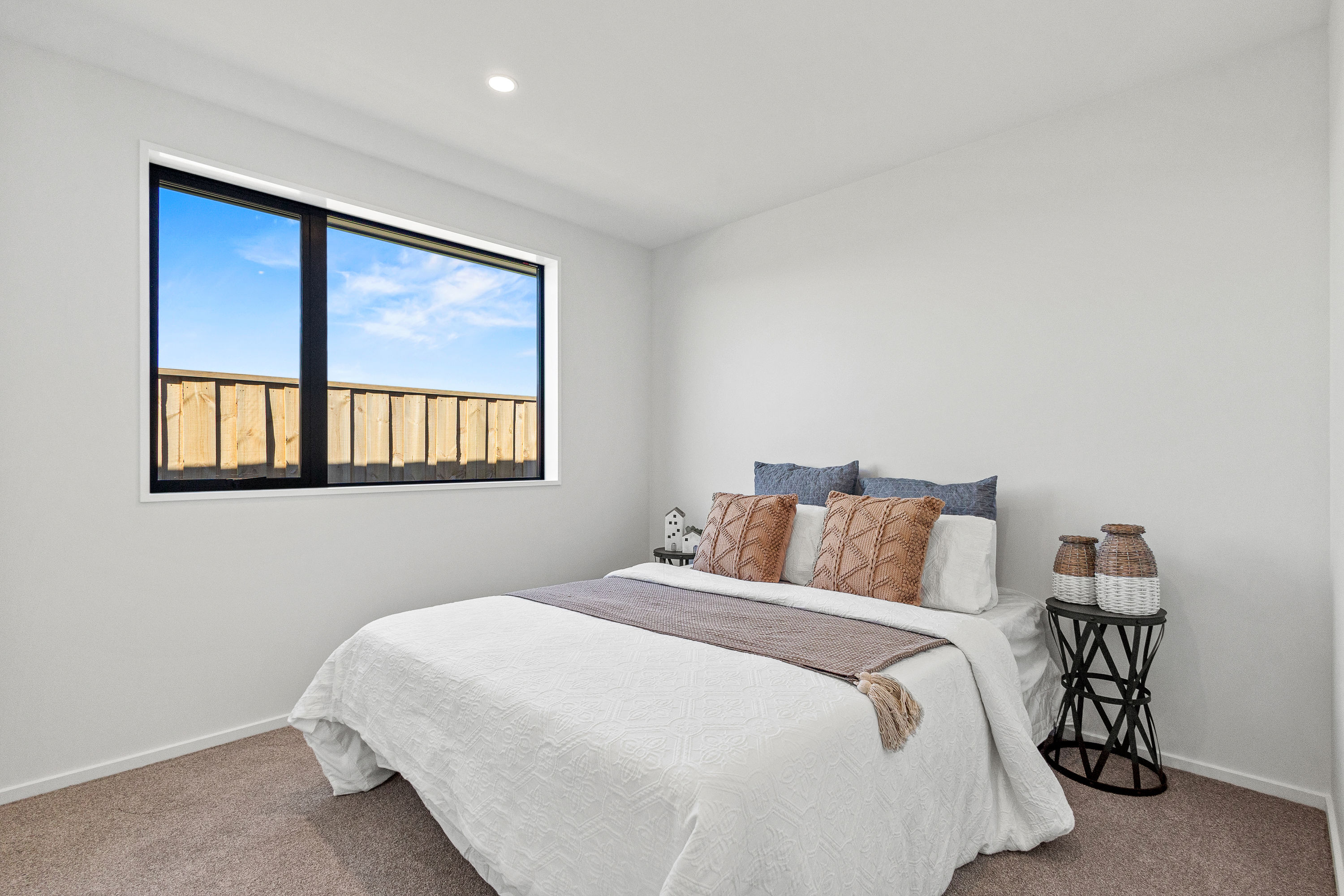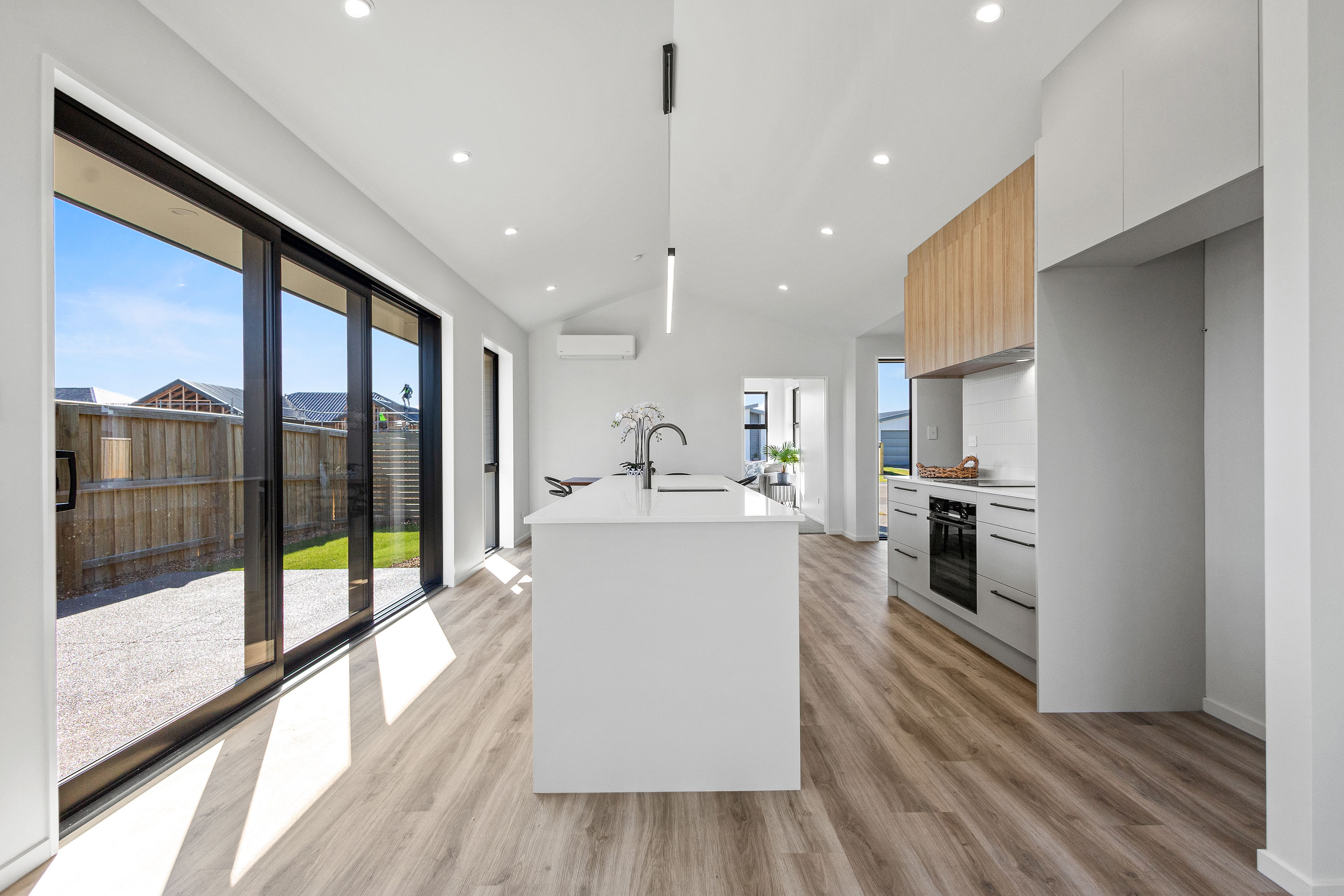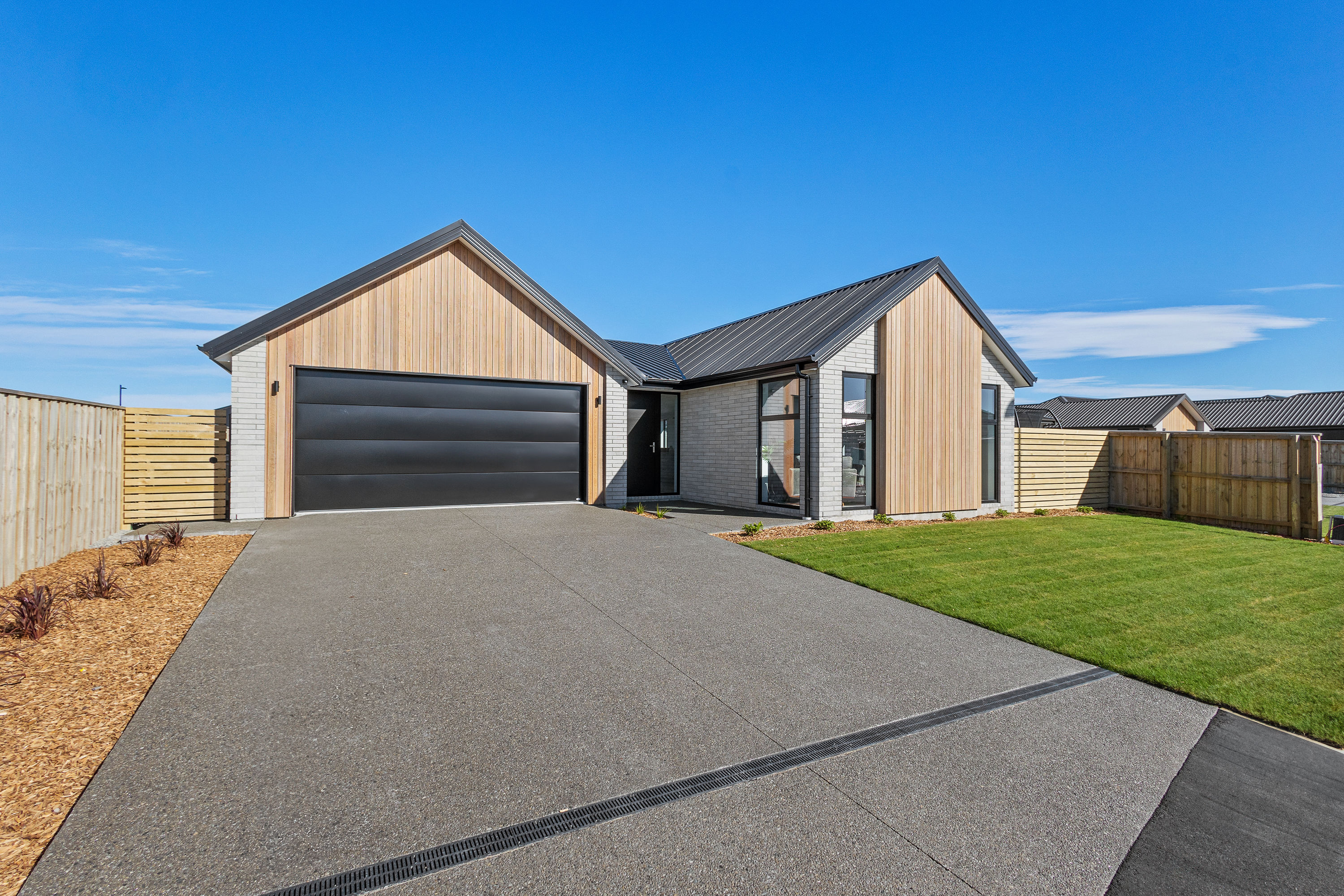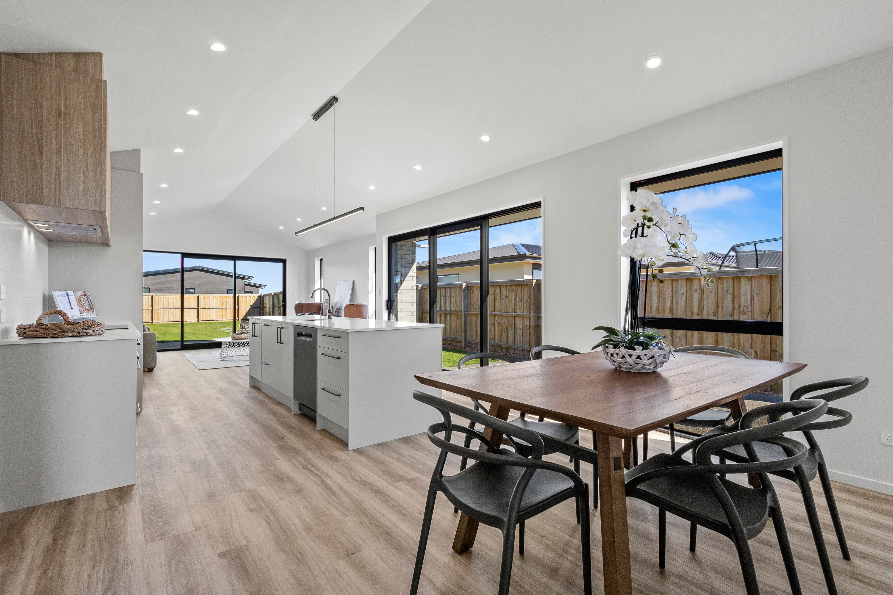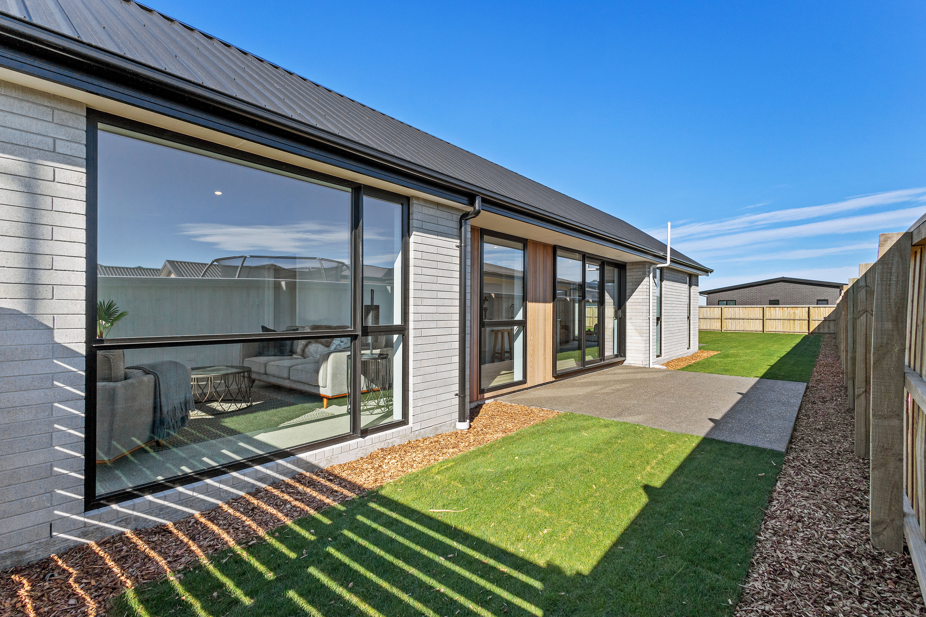 Practical touches have been carefully considered: a generous walk-in pantry to keep the kitchen tidy, a spacious fully fitted laundry space with outdoor access, and a double garage with carpet to keep life organised. Outside, the landscaped section offers plenty of space to add your own touches – a vegetable garden, a trampoline, or simply a sunny spot to sit and relax.