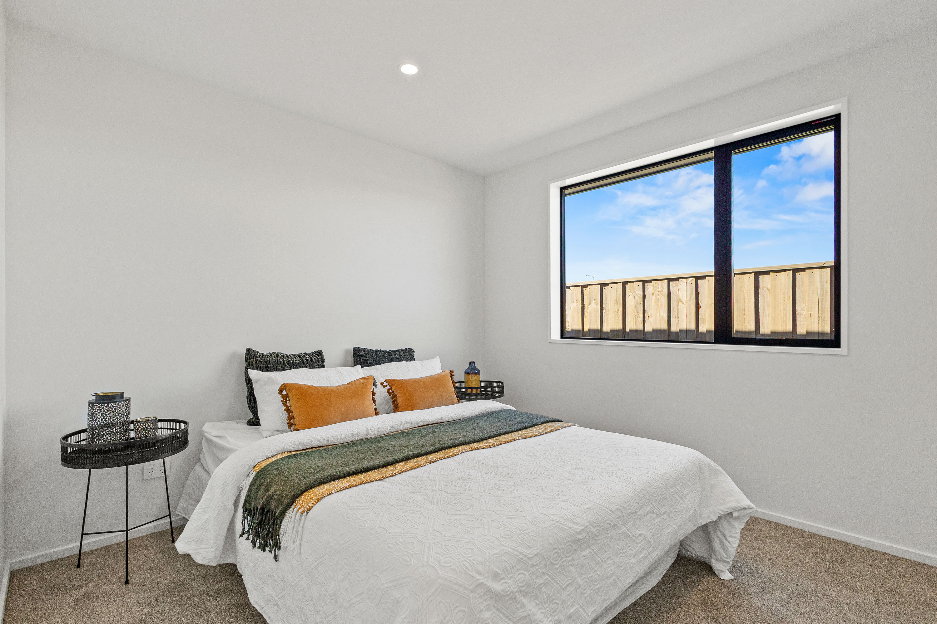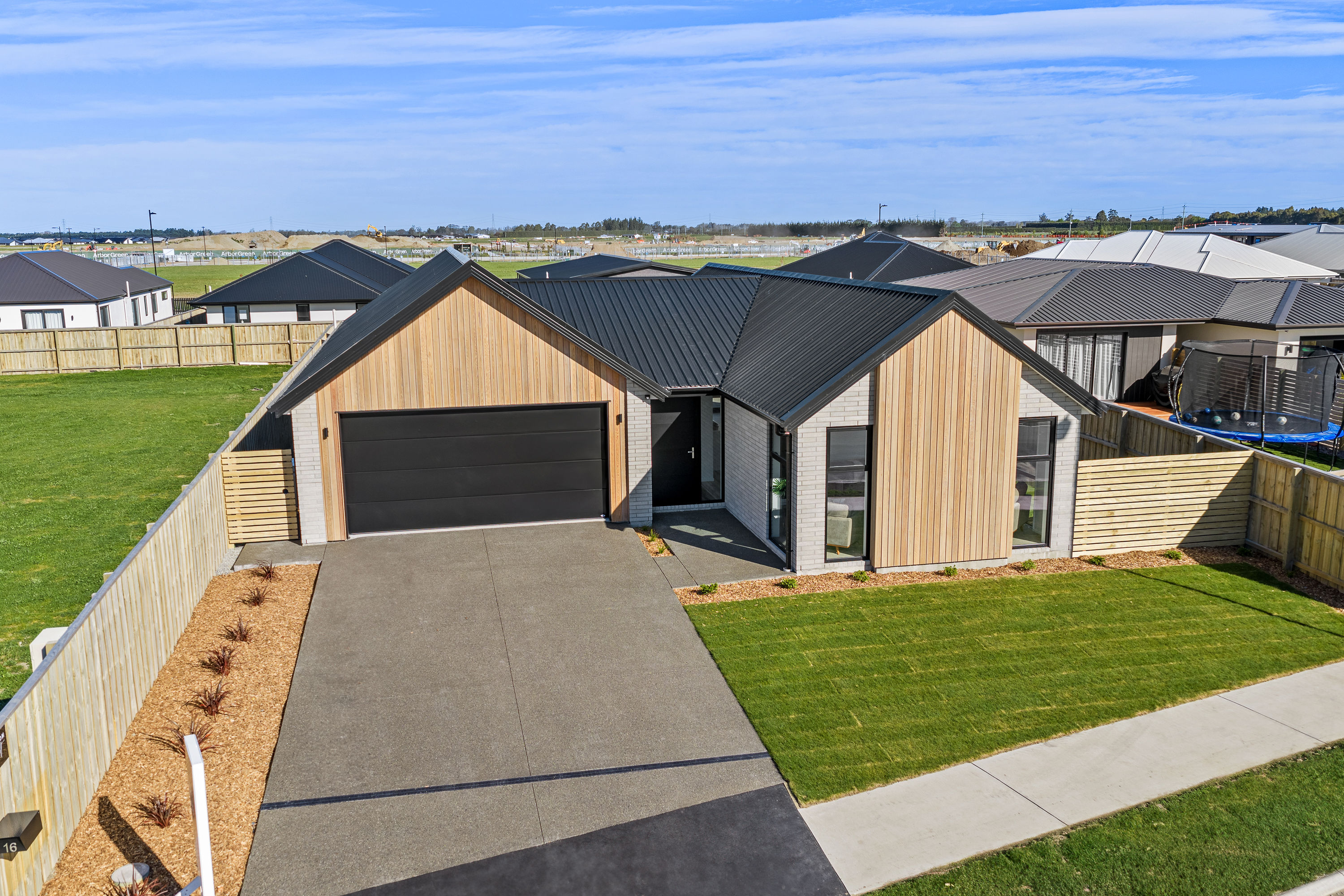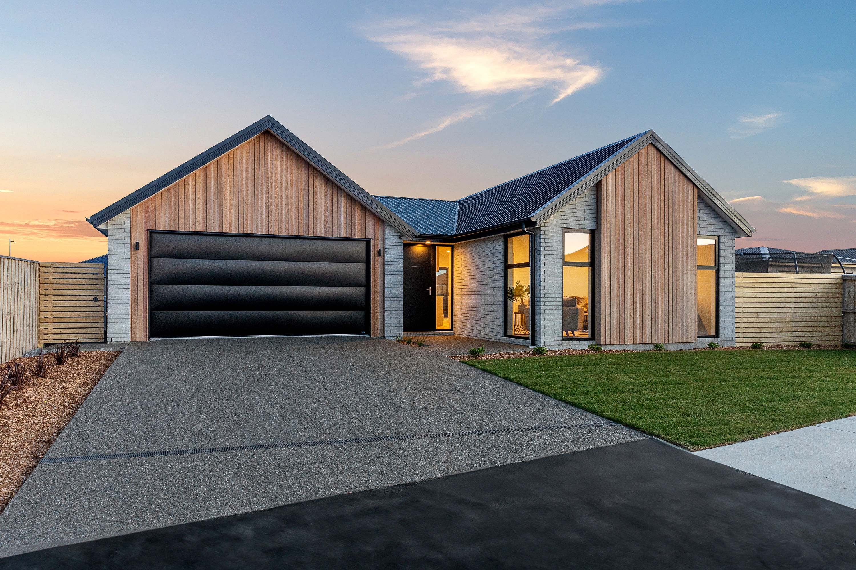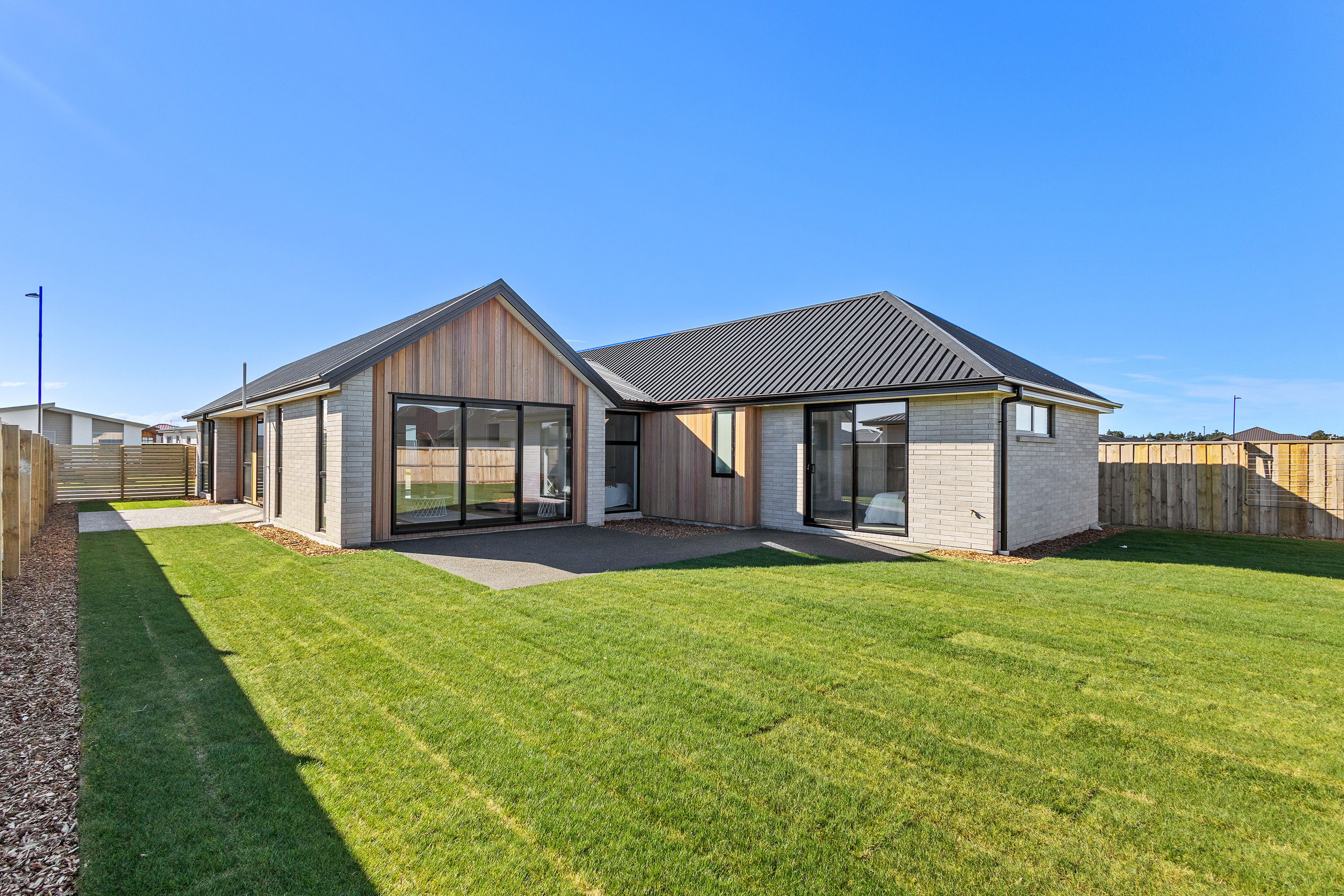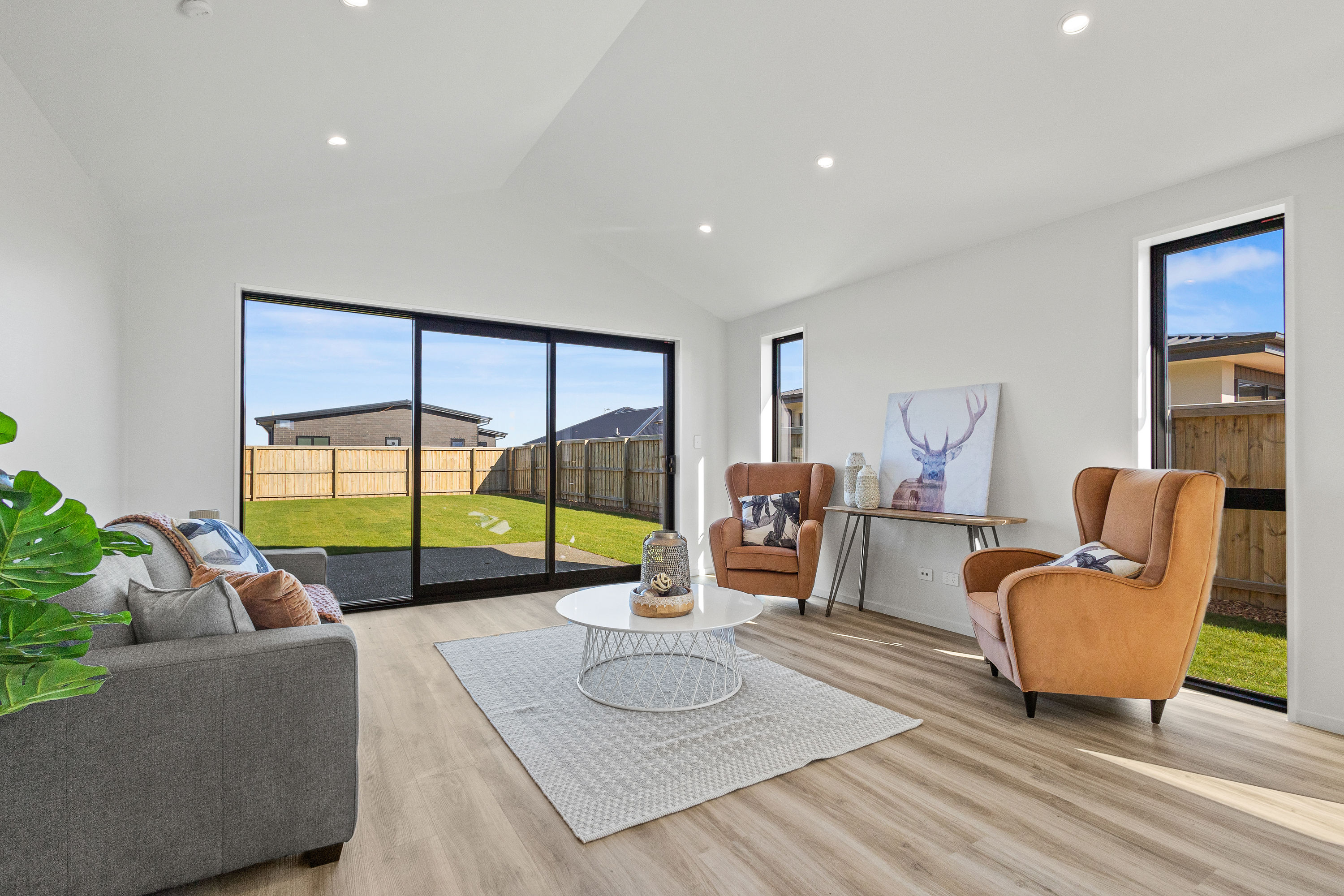 Practical touches have been carefully considered: a generous walk-in pantry to keep the kitchen tidy, a spacious fully fitted laundry space with outdoor access, and a double garage with carpet to keep life organised. Outside, the landscaped section offers plenty of space to add your own touches – a vegetable garden, a trampoline, or simply a sunny spot to sit and relax.
