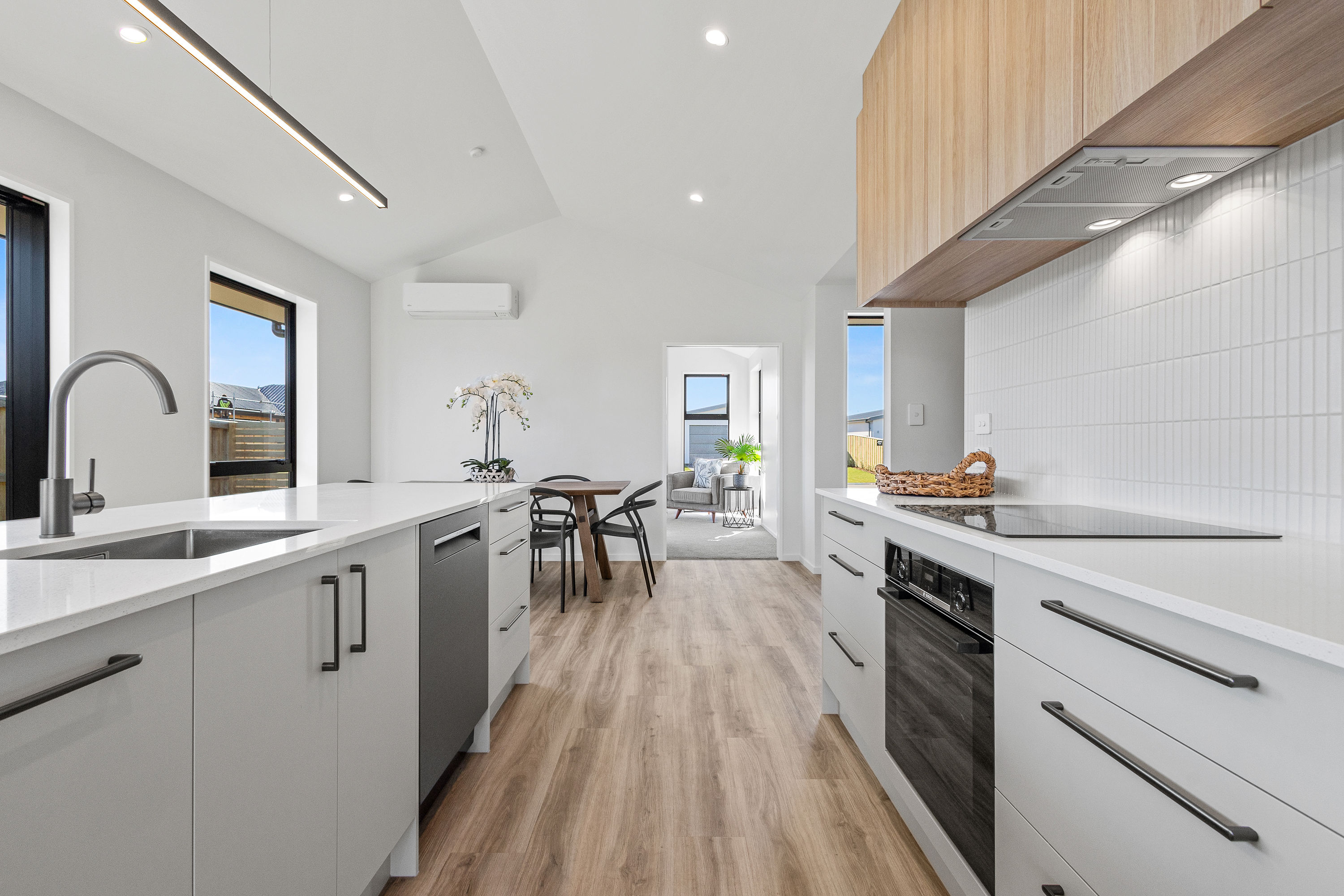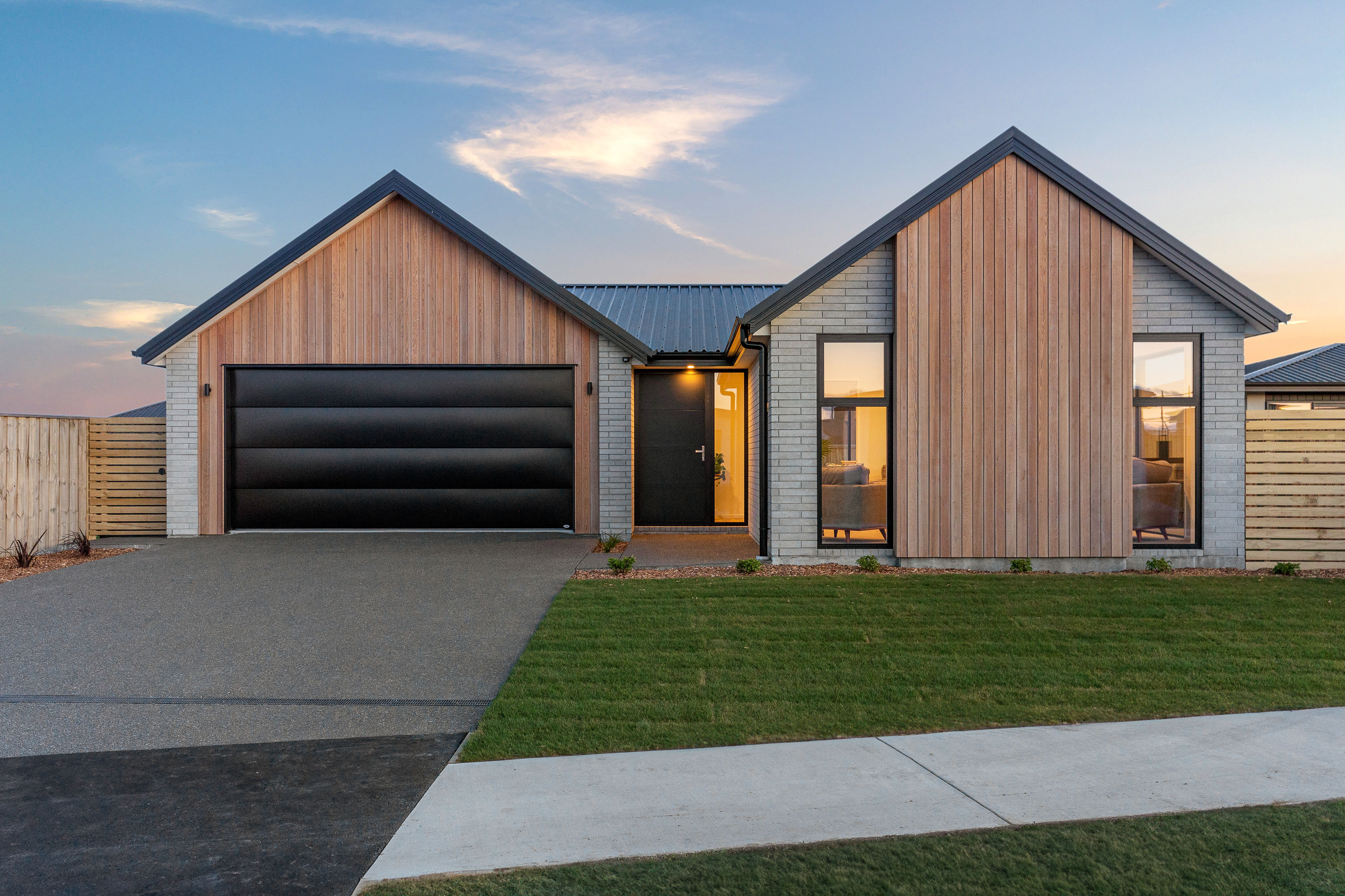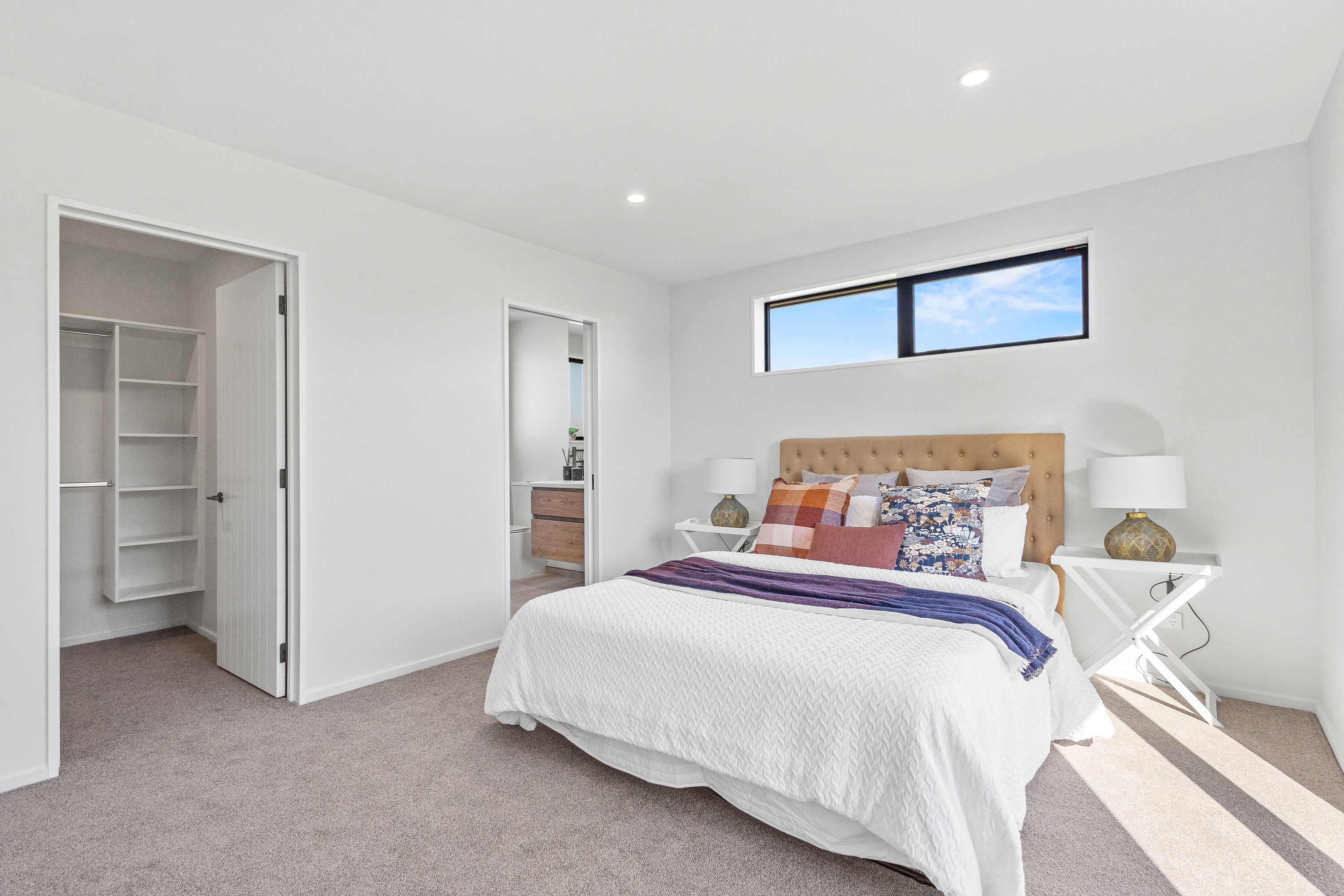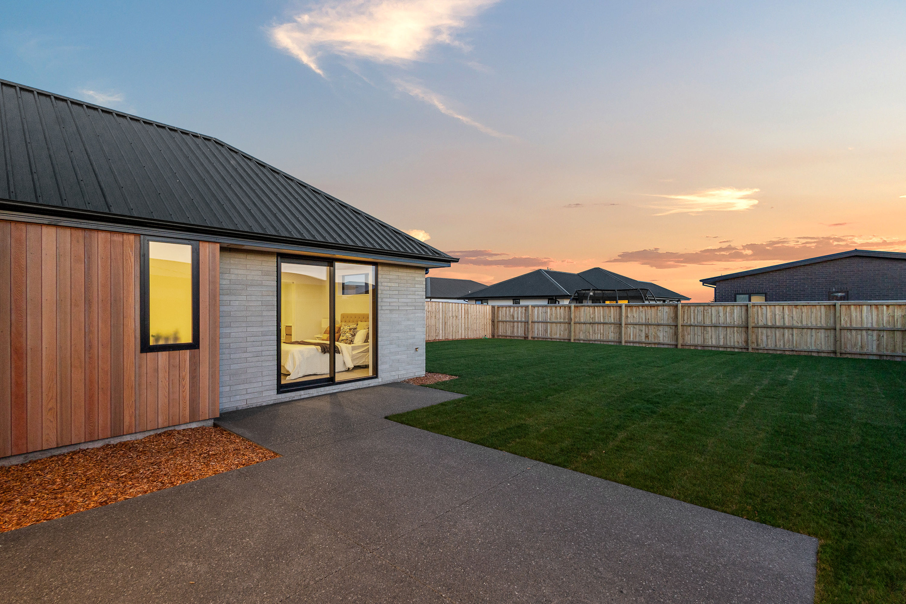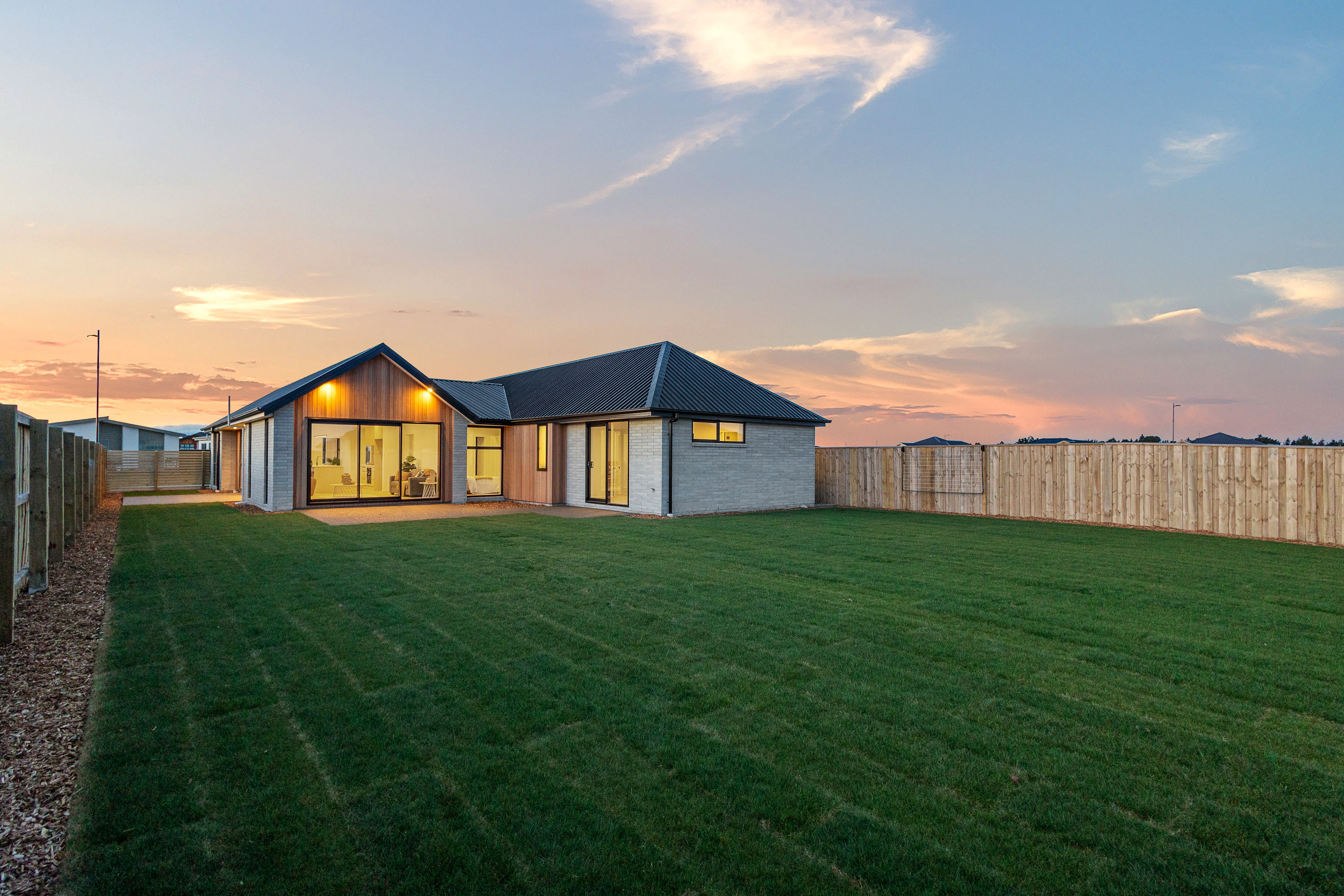Practical touches have been carefully considered: a generous walk-in pantry to keep the kitchen tidy, a spacious fully fitted laundry space with outdoor access, and a double garage with carpet to keep life organised. Outside, the landscaped section offers plenty of space to add your own touches – a vegetable garden, a trampoline, or simply a sunny spot to sit and relax.