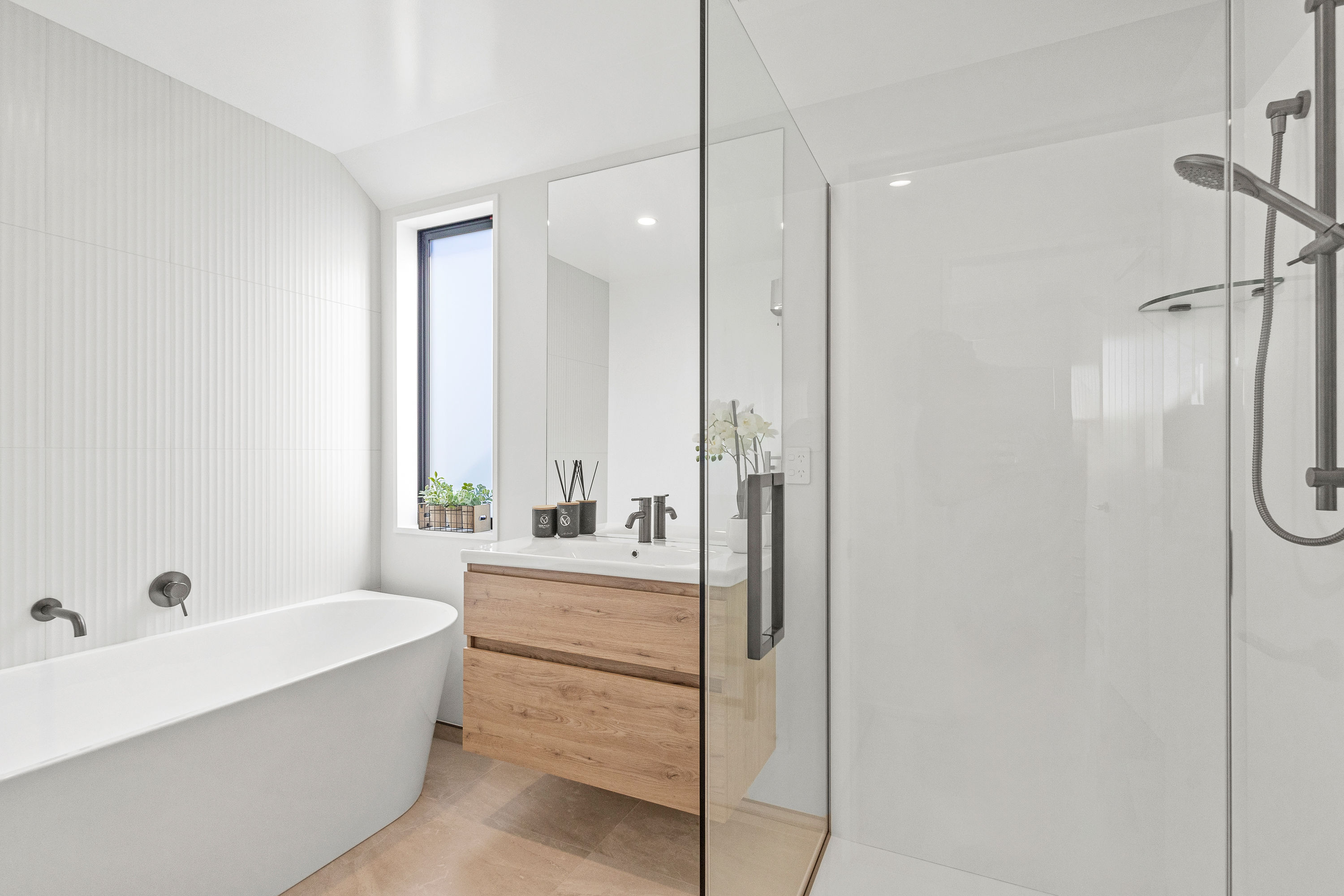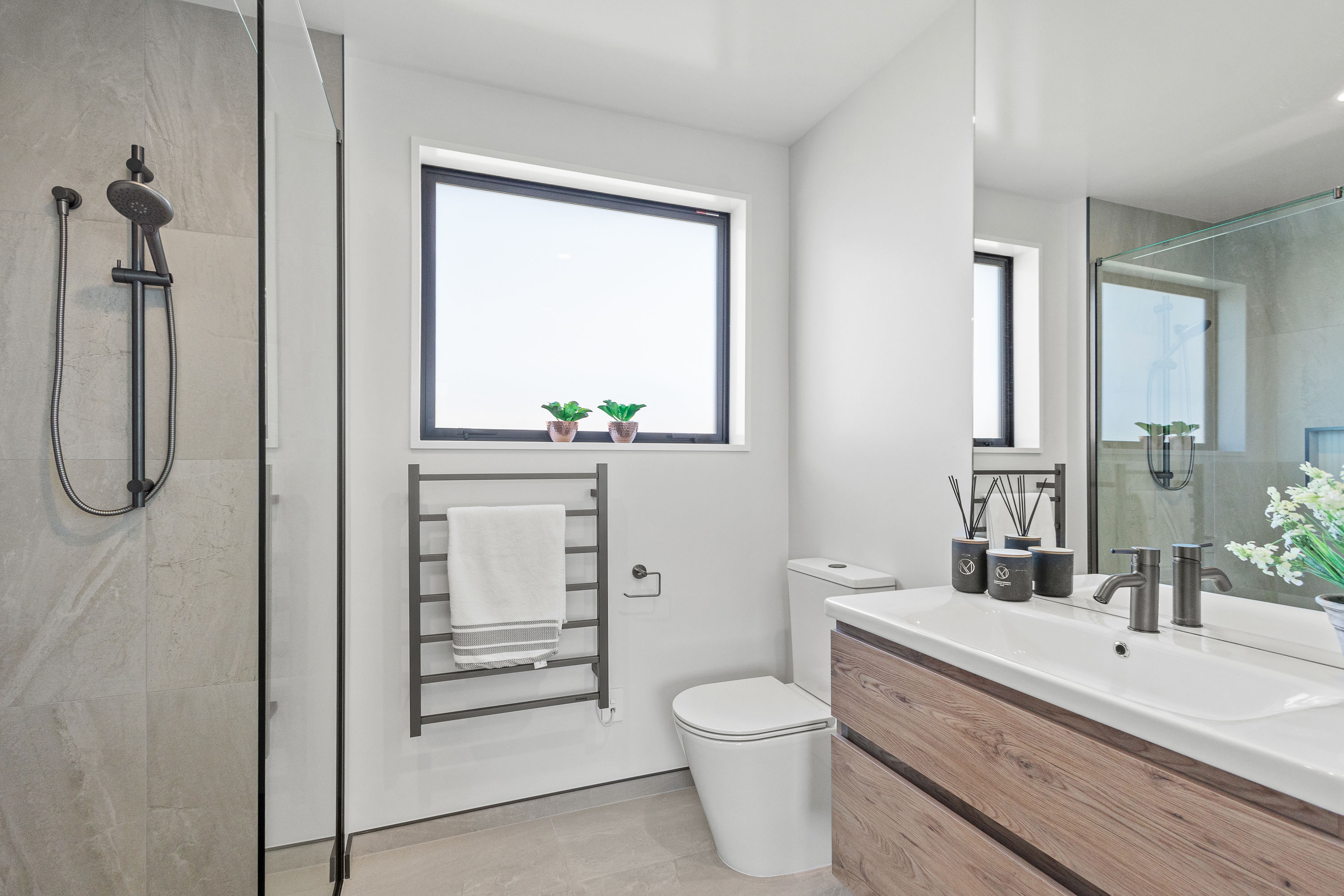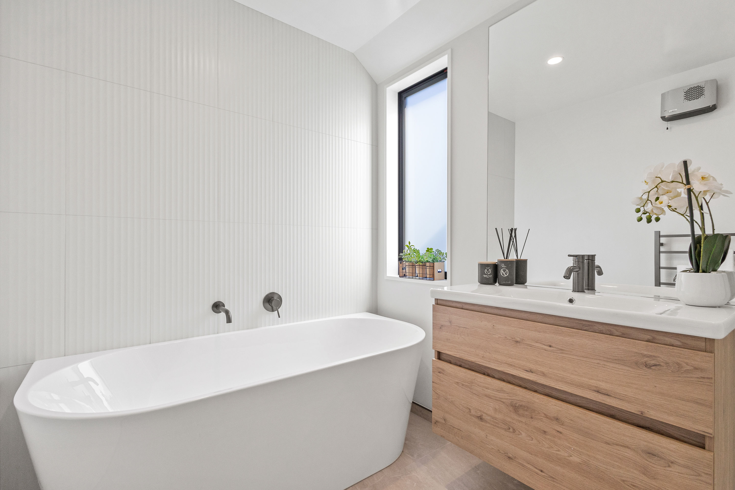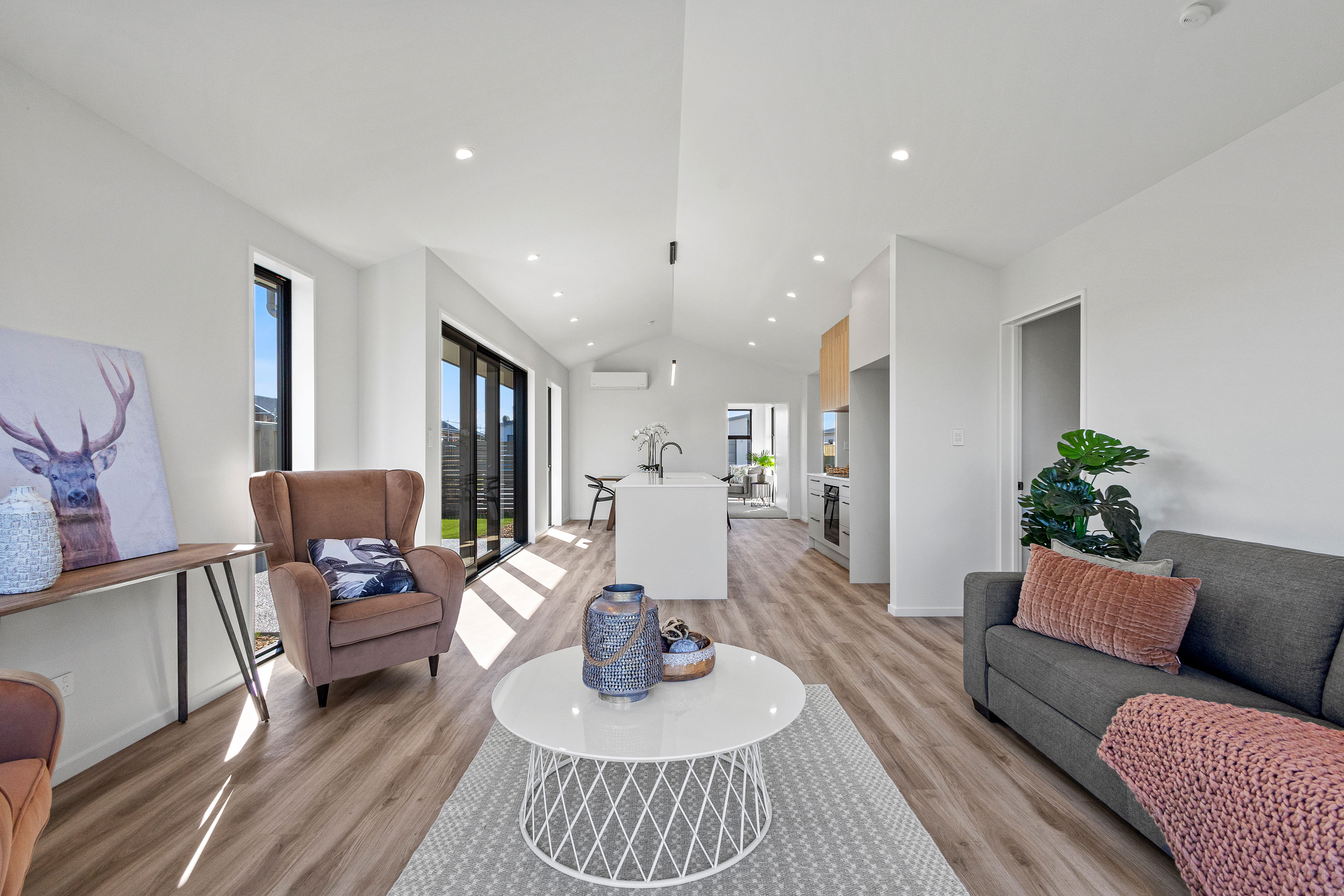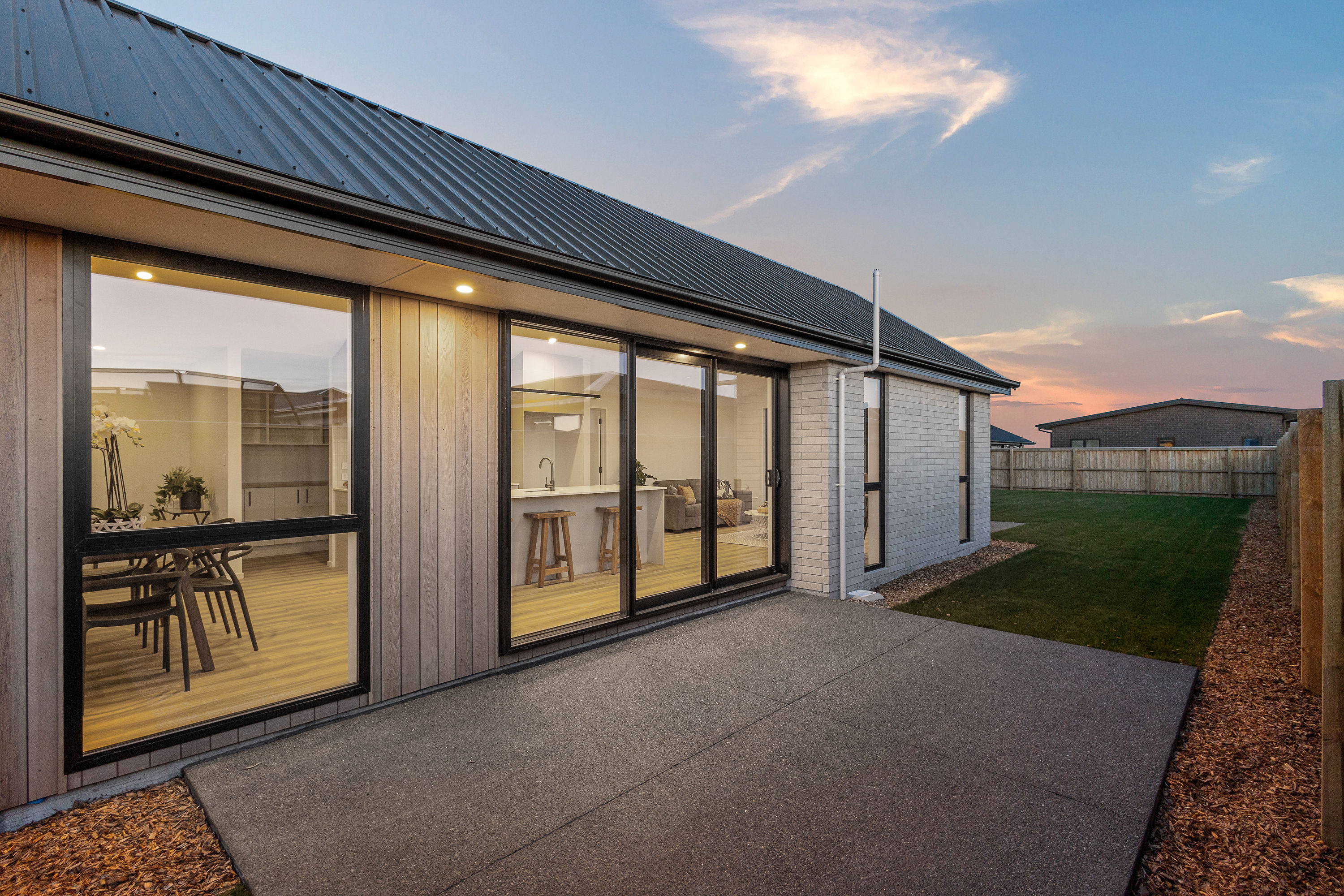 Practical touches have been carefully considered: a generous walk-in pantry to keep the kitchen tidy, a spacious fully fitted laundry space with outdoor access, and a double garage with carpet to keep life organised. Outside, the landscaped section offers plenty of space to add your own touches – a vegetable garden, a trampoline, or simply a sunny spot to sit and relax.