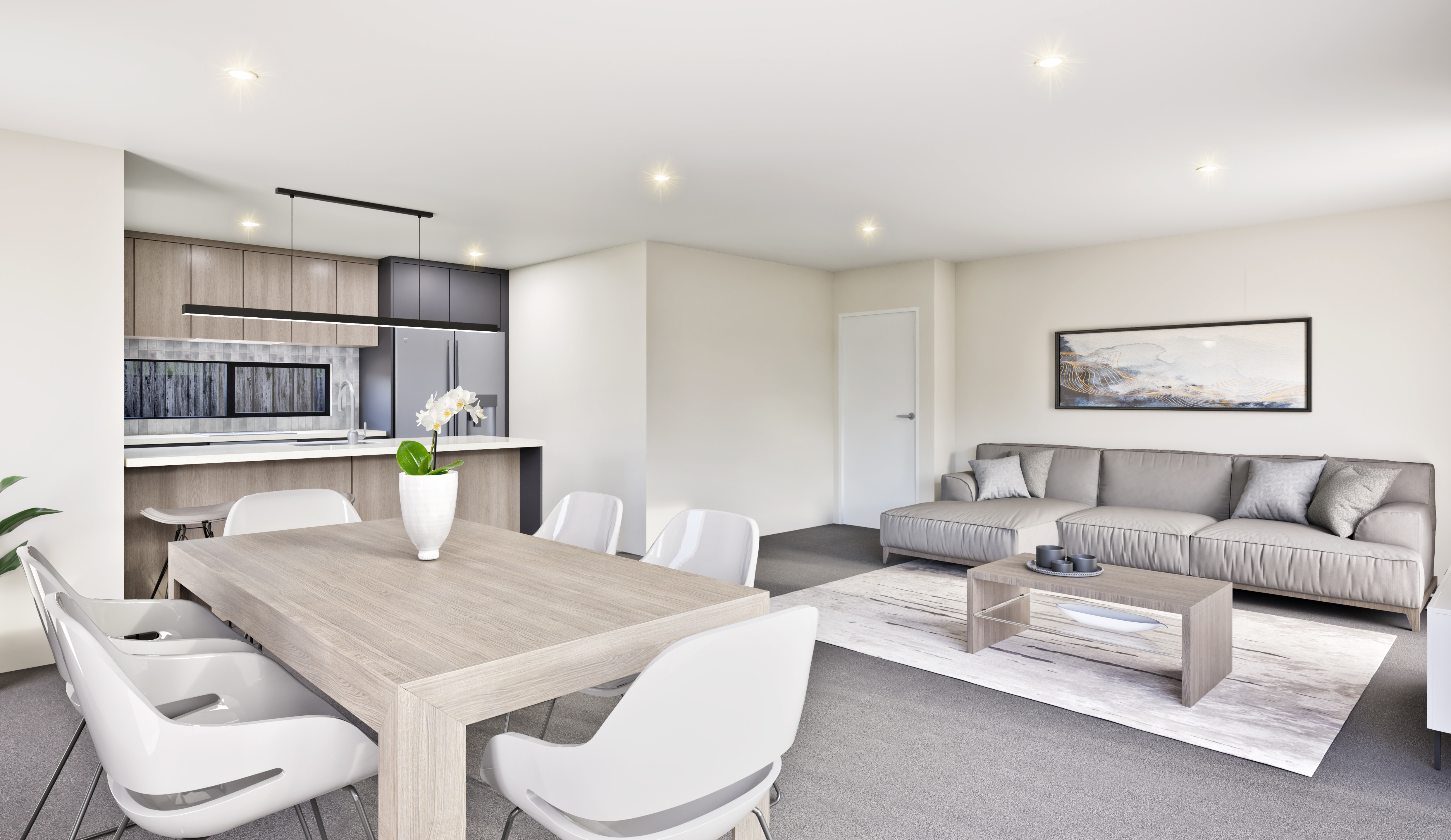 Premium finishes throughout – Dulux Torere & St Clair Half paint palette, plush Godfrey Hirst 48oz carpet, and Robert Malcolm vinyl planking