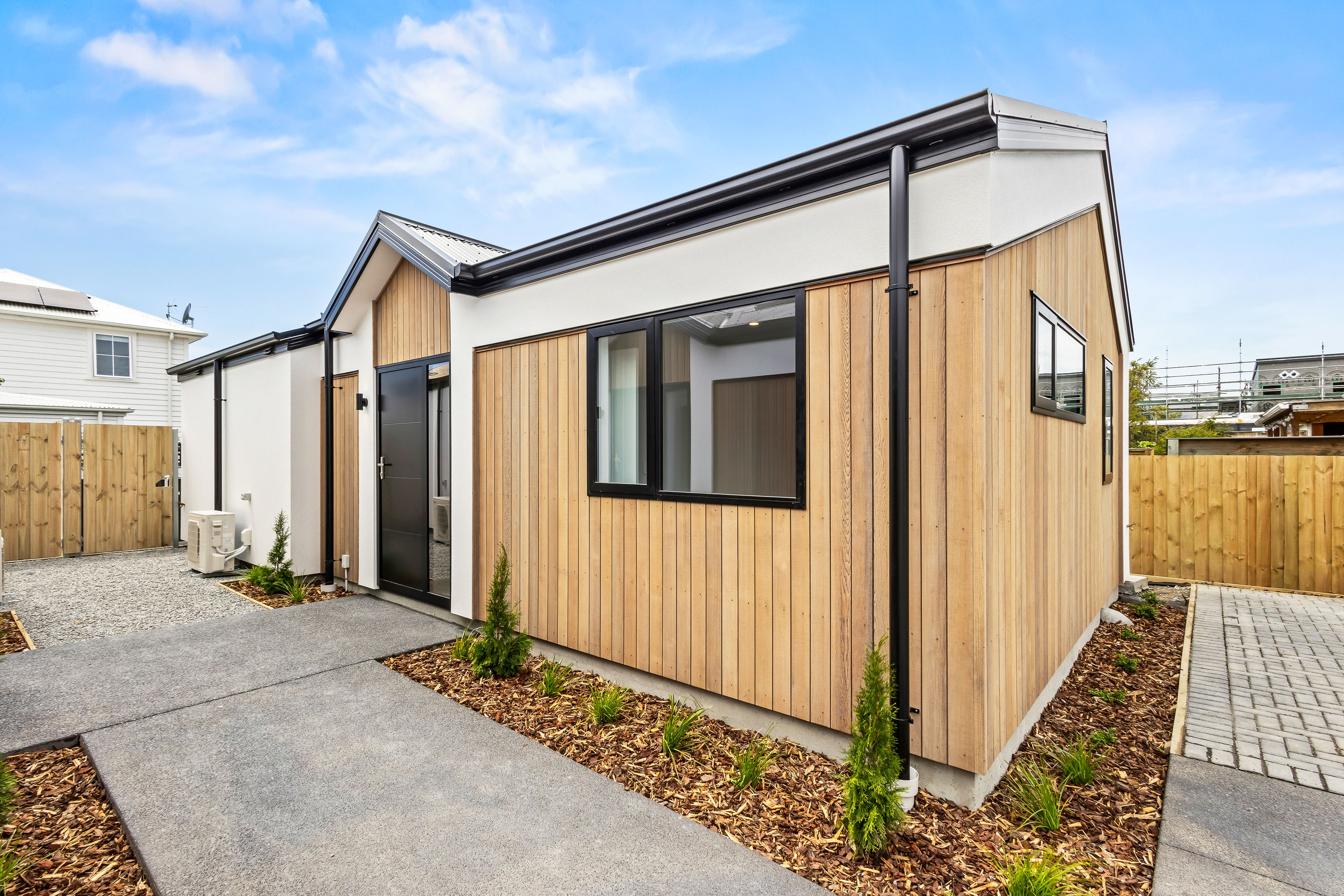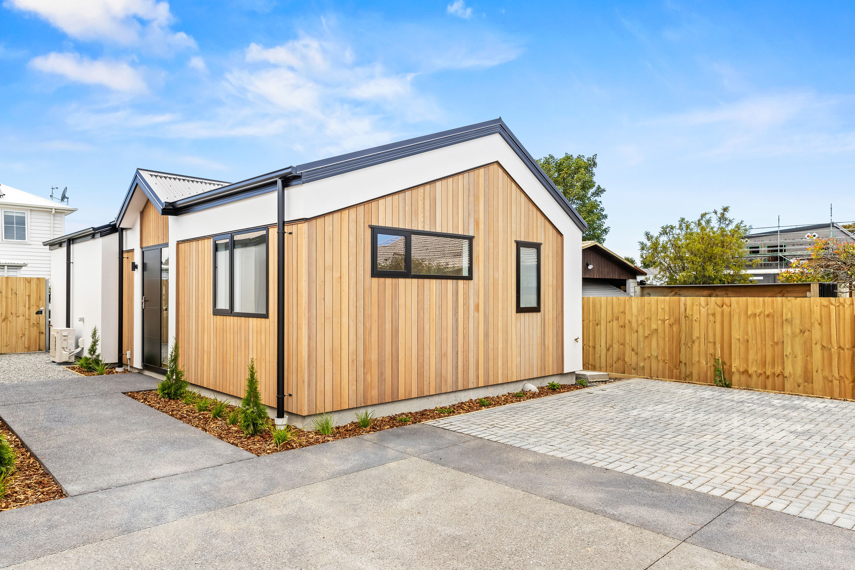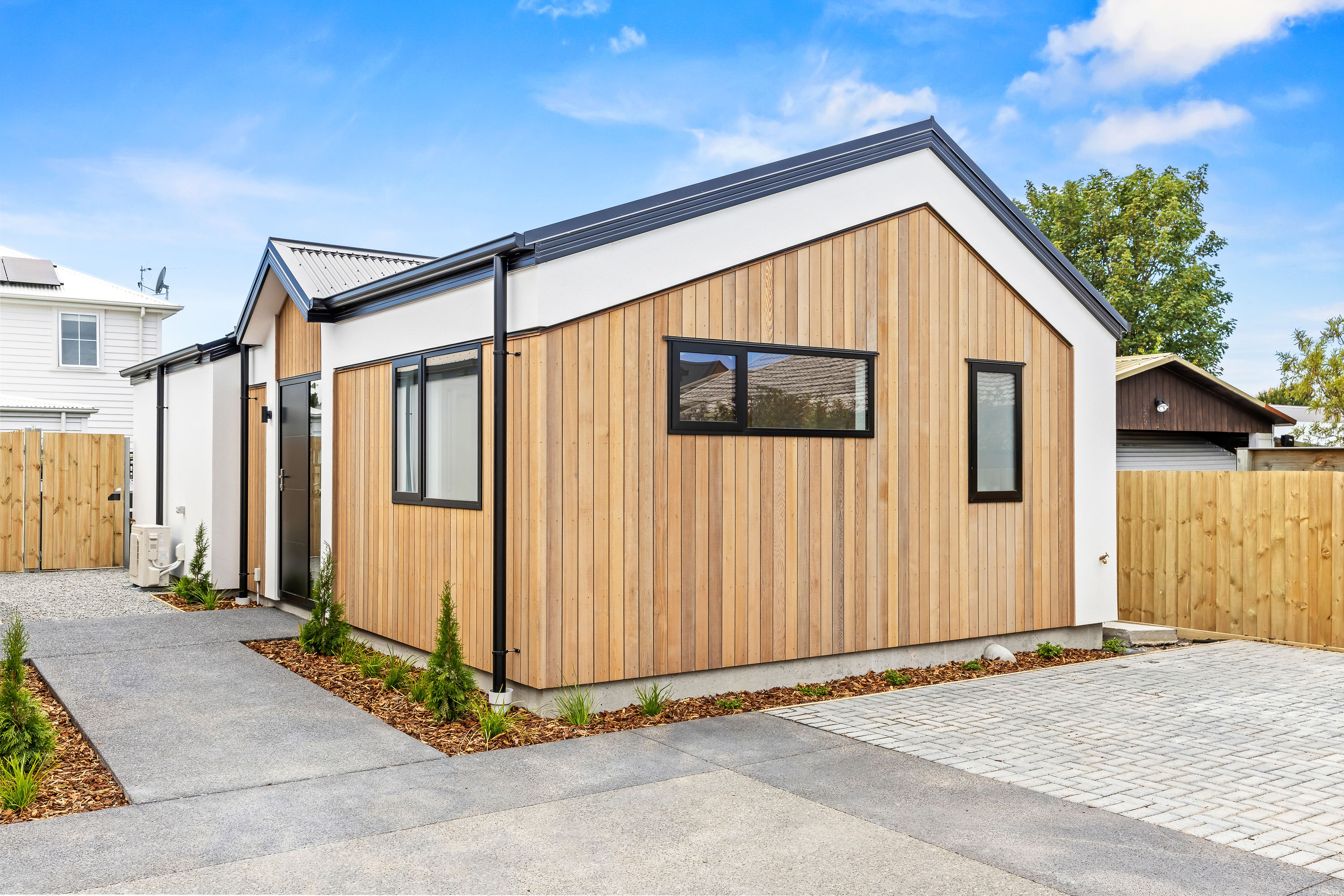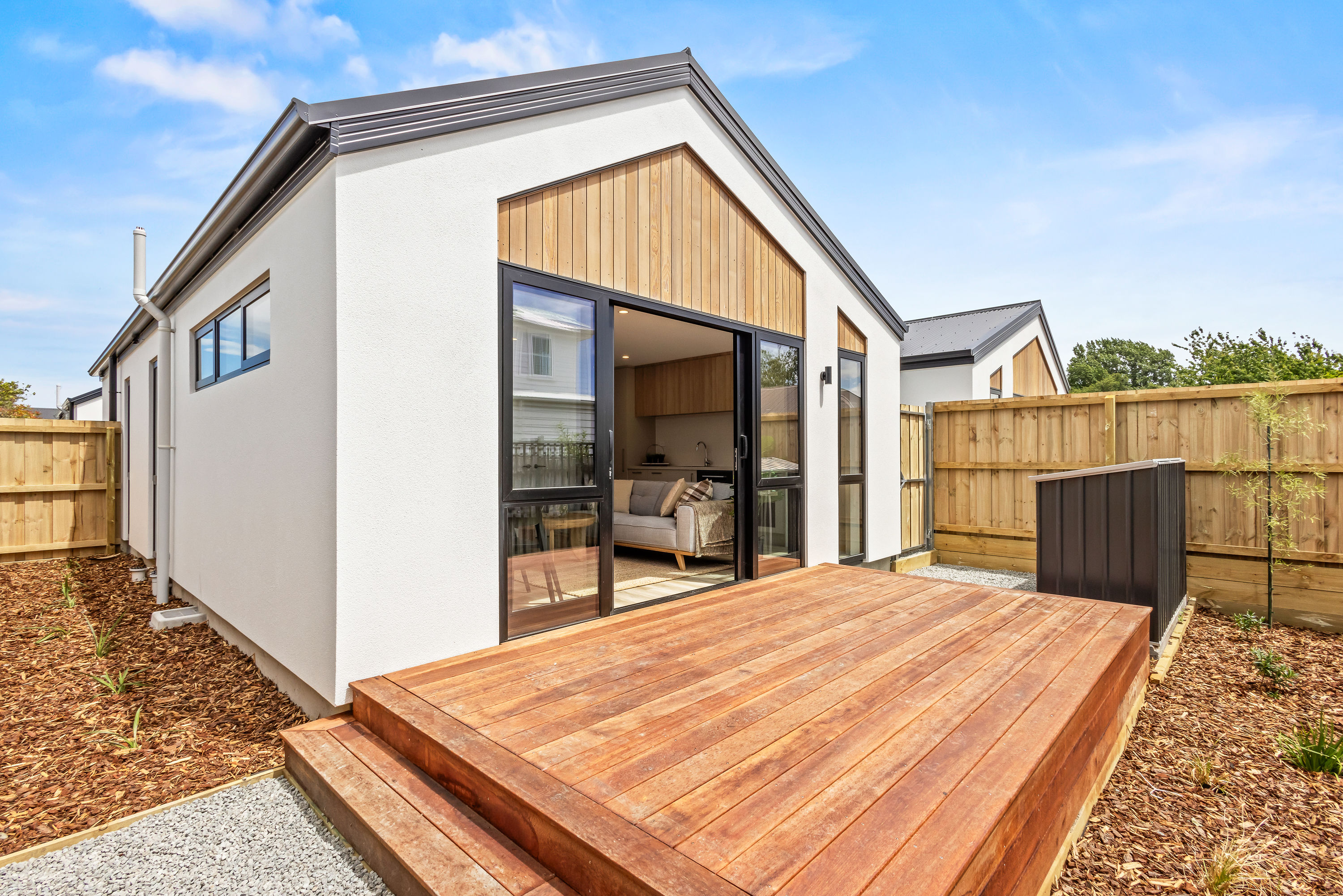 From the moment you arrive, the striking cedar and insulated Plaster façade sets a warm, welcoming tone. Clean gable lines, thermally-broken joinery in bold black, and a cohesive palette of natural textures create a home that is both elegant and enduring. Step inside and you’re greeted by a sun-filled open-plan living space flowing seamlessly to the private north-facing deck—ideal for relaxed entertaining or peaceful morning coffee.