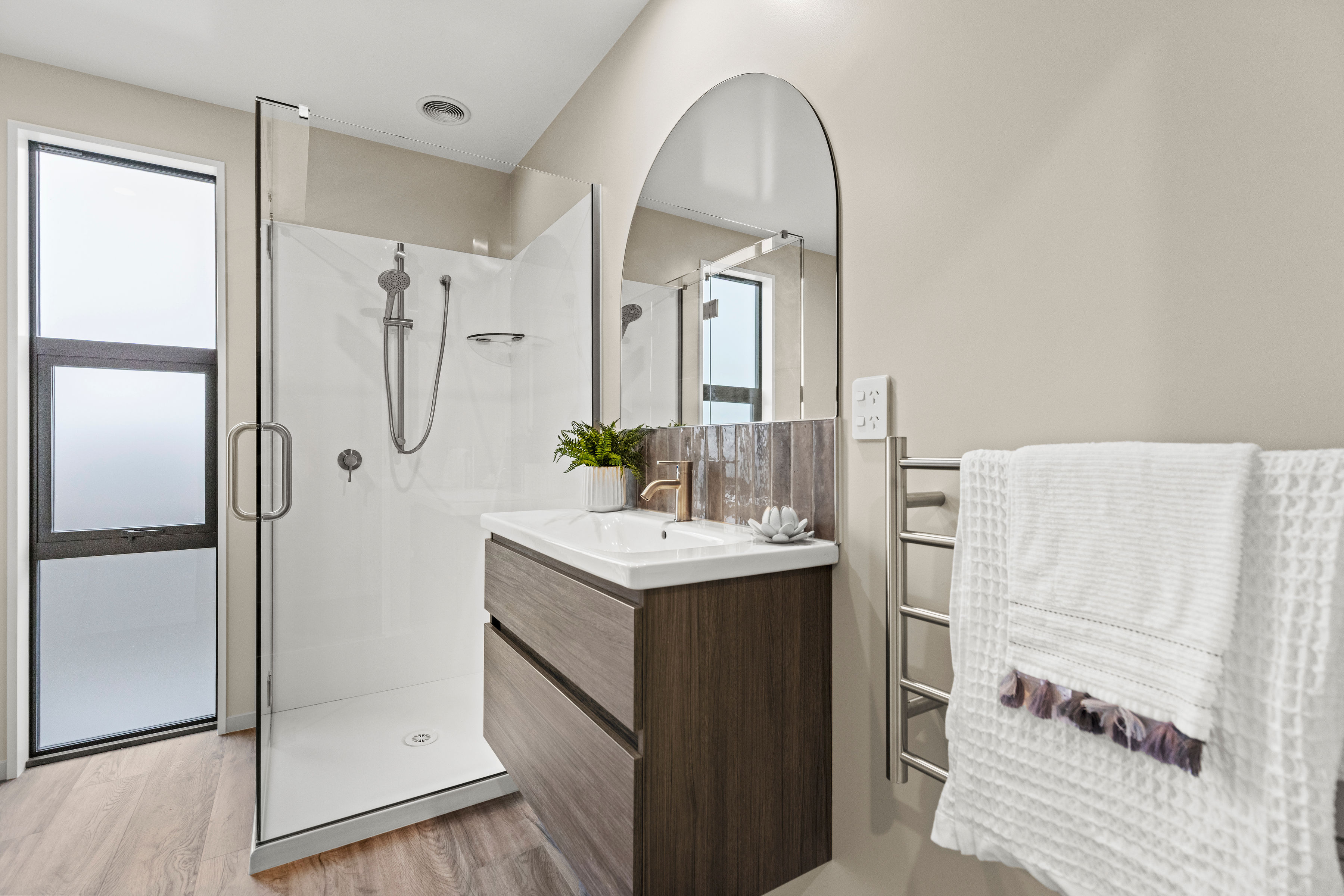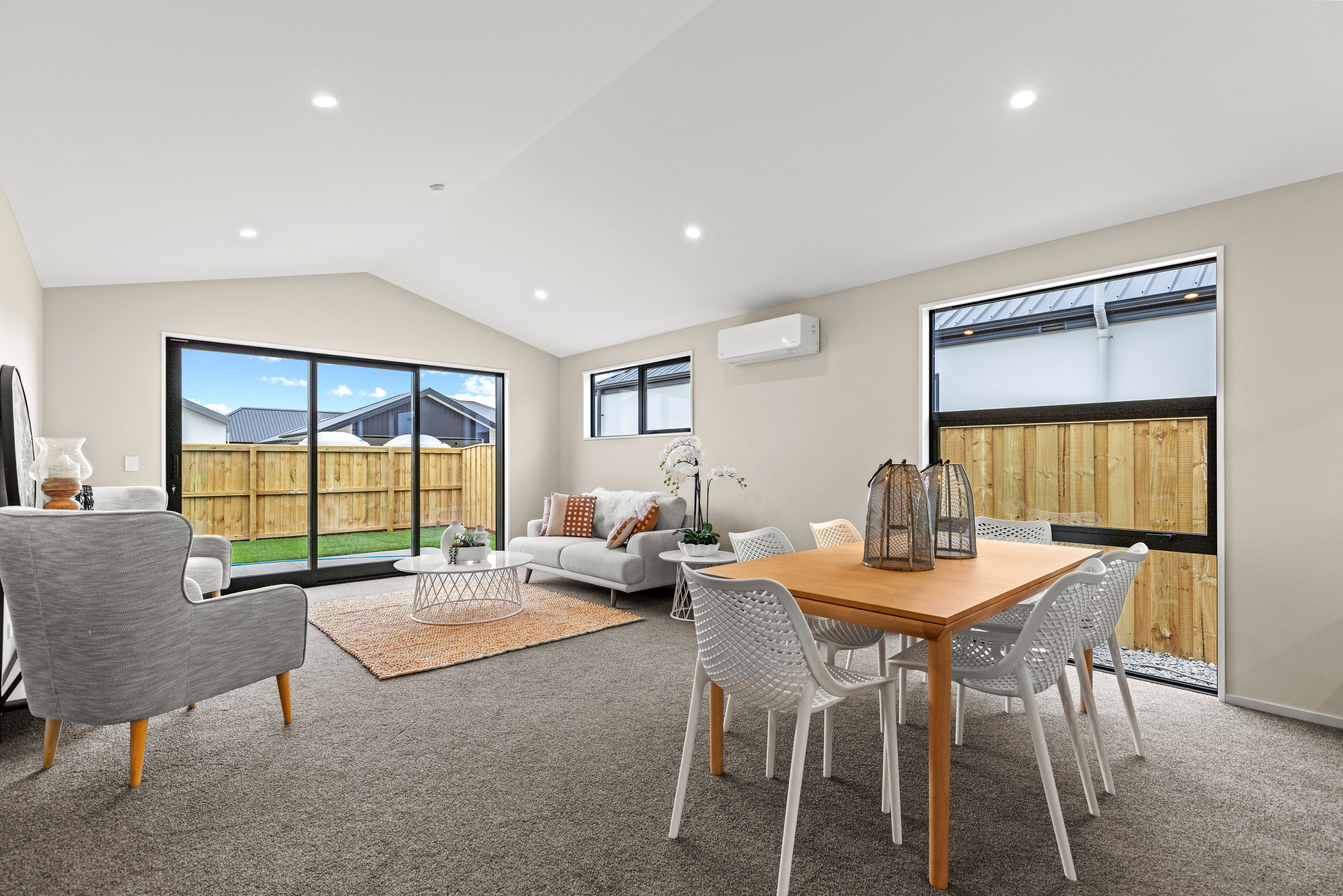 Comfort is assured year-round with R6.0 ceiling and R2.8 wall insulation, Low-E double glazing, and a heat pump